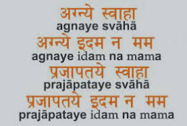 1. Agnaye Swaha Agnaye Idam Na Mama! - (Wrzuć szczyptę ryżu przy Swaha). 2. Prajapataye Swaha Prajapataye Idam Na Mama! - (Wrzuć następną szczyptę ryżu przy Swaha).